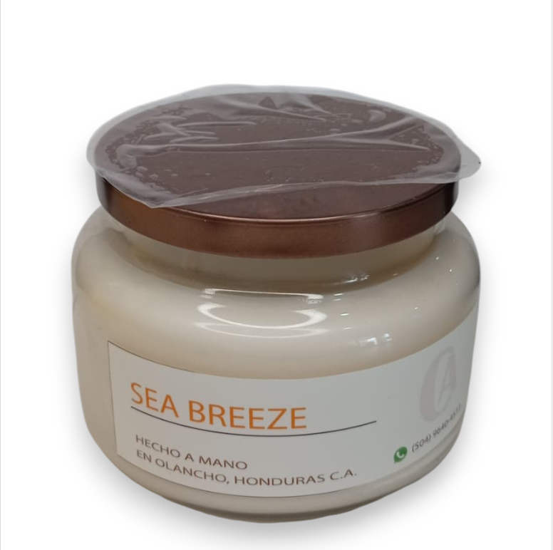 Vela de larga duración con aroma Sea Breeze, ideal para ambientes frescos y relajantes.